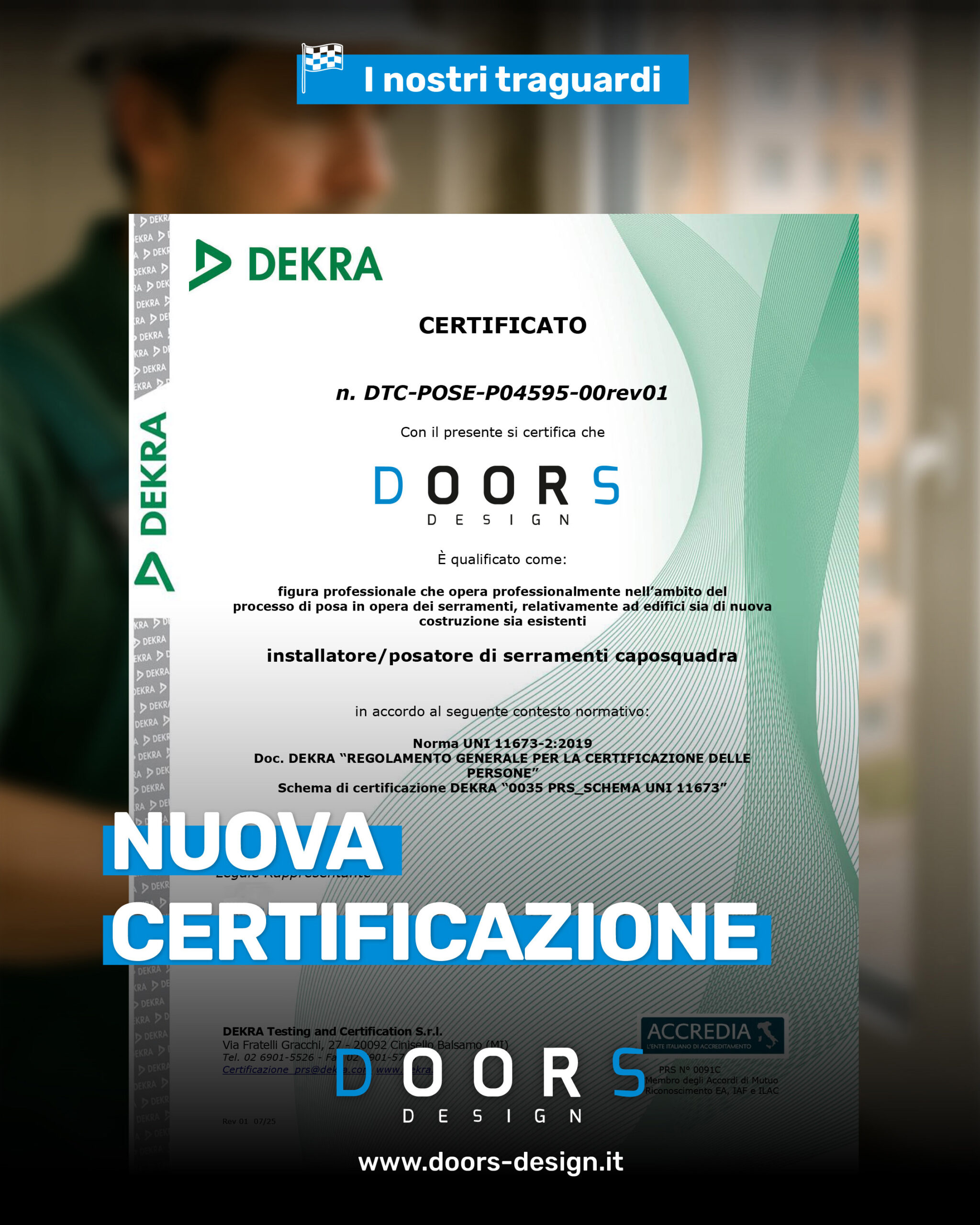 Abbiamo ottenuto il Certificato Dekra per la posa in opera.